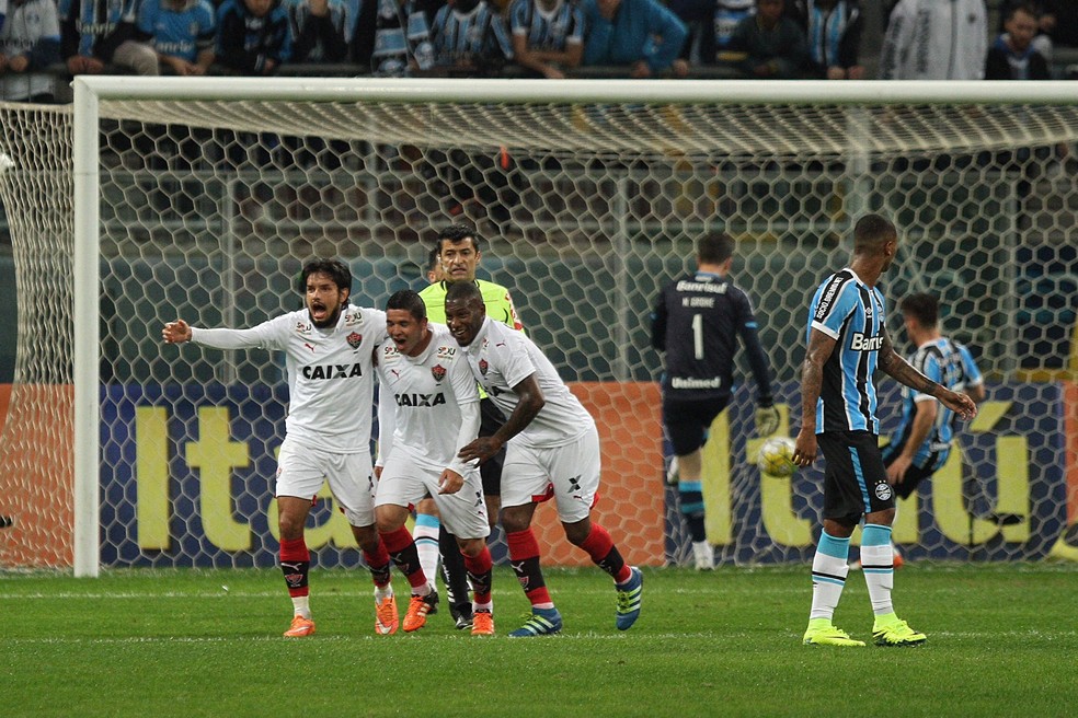 Escalação do Vitória no último triunfo sobre o Grêmio: Fernando Miguel; Diego Renan, Kanu, Victor Ramos, Ramon e Euller (Zé Welisson); Amaral (Leandro Domingues), Willian Farias e Tiago Real; Dagoberto (Marcelo) e Kieza. Treinador: Vágner Mancini.