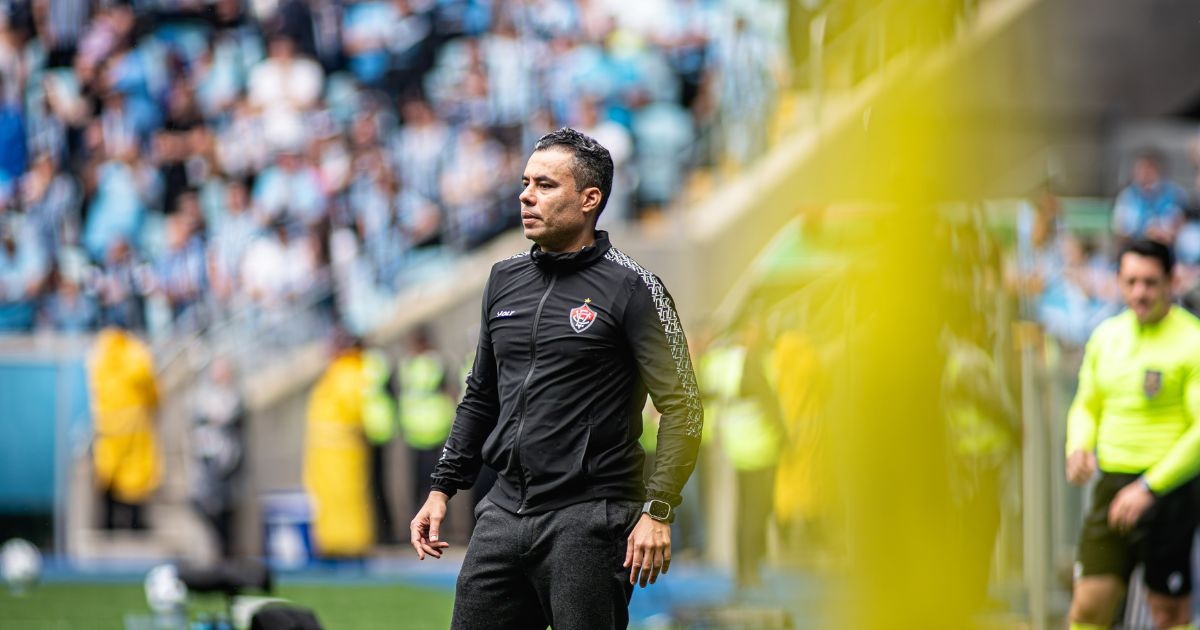 O Vitória perdeu para o Grêmio neste domingo (28), pelo placar de 3 a 1, na estreia do técnico Jair Ventura. Após o duelo válido pela 25ª rodada do Campeonato Brasileiro, o treinador reforçou que o clube precisa melhorar em todos os setores do campo. Além disso, durante a coletiva de imprensa, o comandante também elogiou as evoluções do elenco, principalmente durante a primeira etapa.