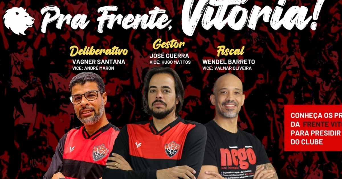 A eleição que definirá a nova gestão do Vitória para o triênio 2026-2028 acontecerá no dia 13 de dezembro de 2025. Além da Frente Vitória Popular, já confirmaram pré-candidaturas o atual presidente Fábio Mota, que tentará a reeleição, e o sócio Rodrigo Santos.
