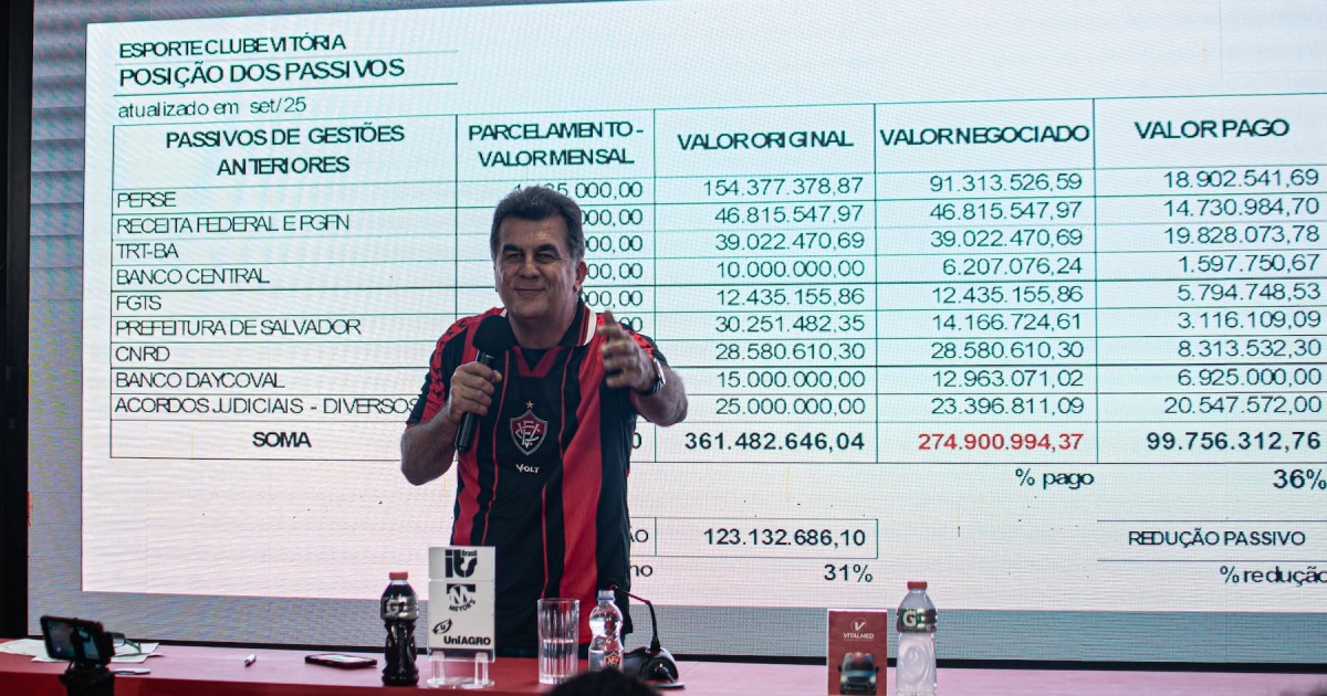 Ele também elogiou a condução de Fábio Mota à frente do clube: “Temos reconhecimento pelo grande trabalho que ele vem fazendo. Sem sombra de dúvidas, é um dos melhores presidentes da história do Esporte Clube Vitória.”