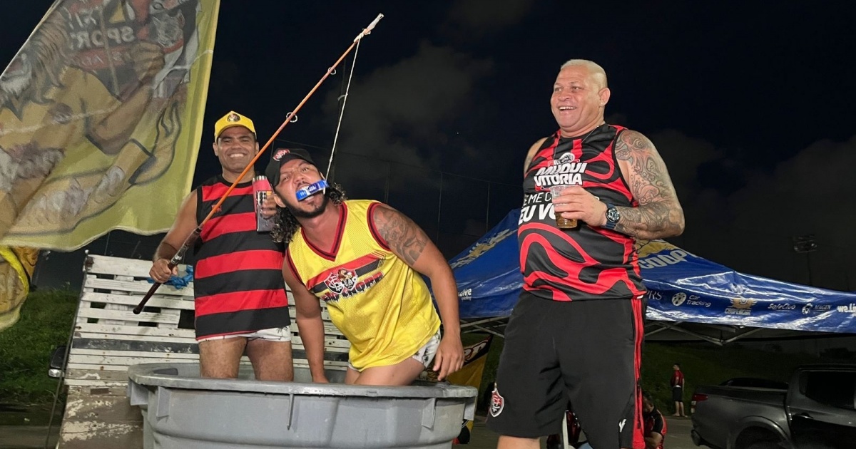 Em noite de clássico, alguns torcedores do Vitória provocaram o Bahia pouco antes do início do duelo entre os rivais no Barradão. Nesta quinta-feira (16), os Rubro-negros colocaram uma piscina no estacionamento da praça esportiva e insinuaram uma pesca, em forma de afronta ao adversário.